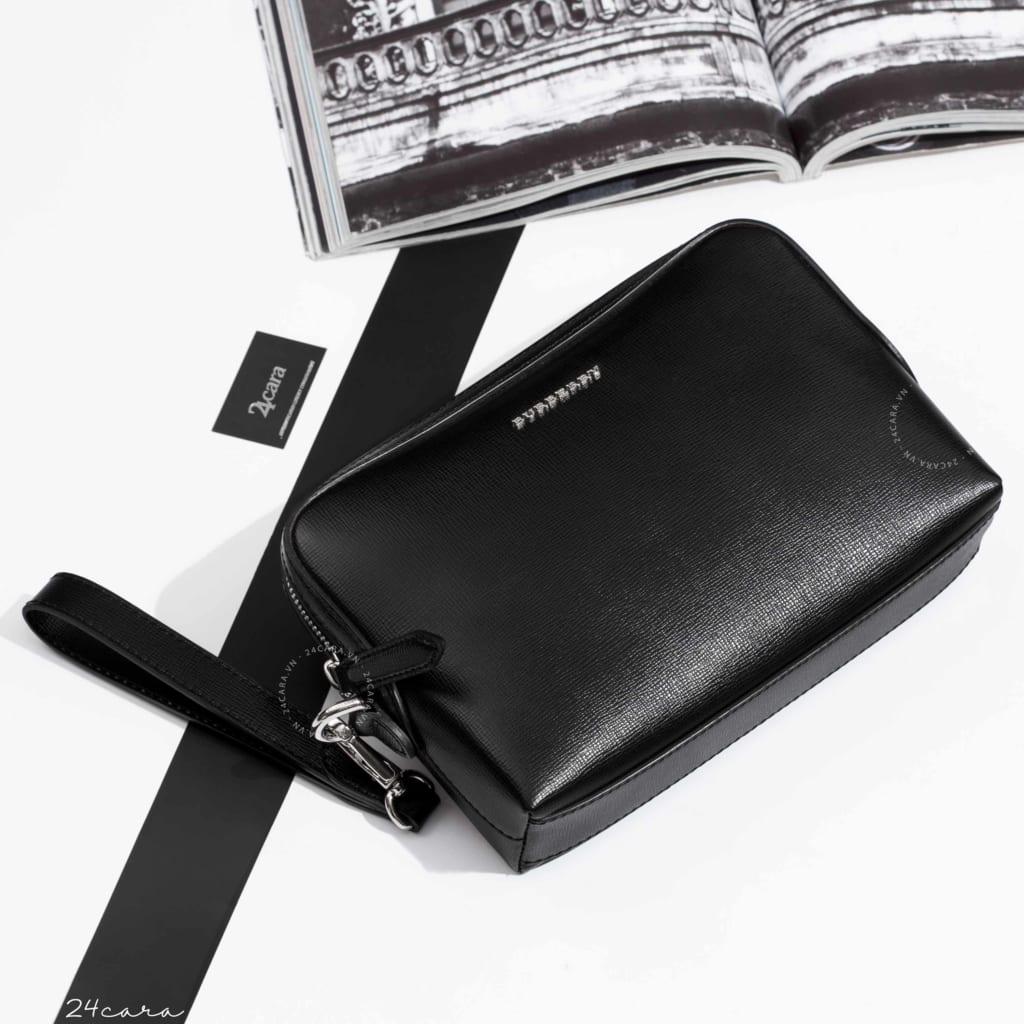 Thương hiệu Burberry cho ra mắt mẫu clutch đi đúng theo sự xa xỉ và lịch thiệp. Sở hữu một thiết kế vô cùng tối giản đề cao tính tiện dụng với màu đen kinh điển, chất liệu da cao cấp, điểm nhấn tên thương hiệu nhẹ nhàng.