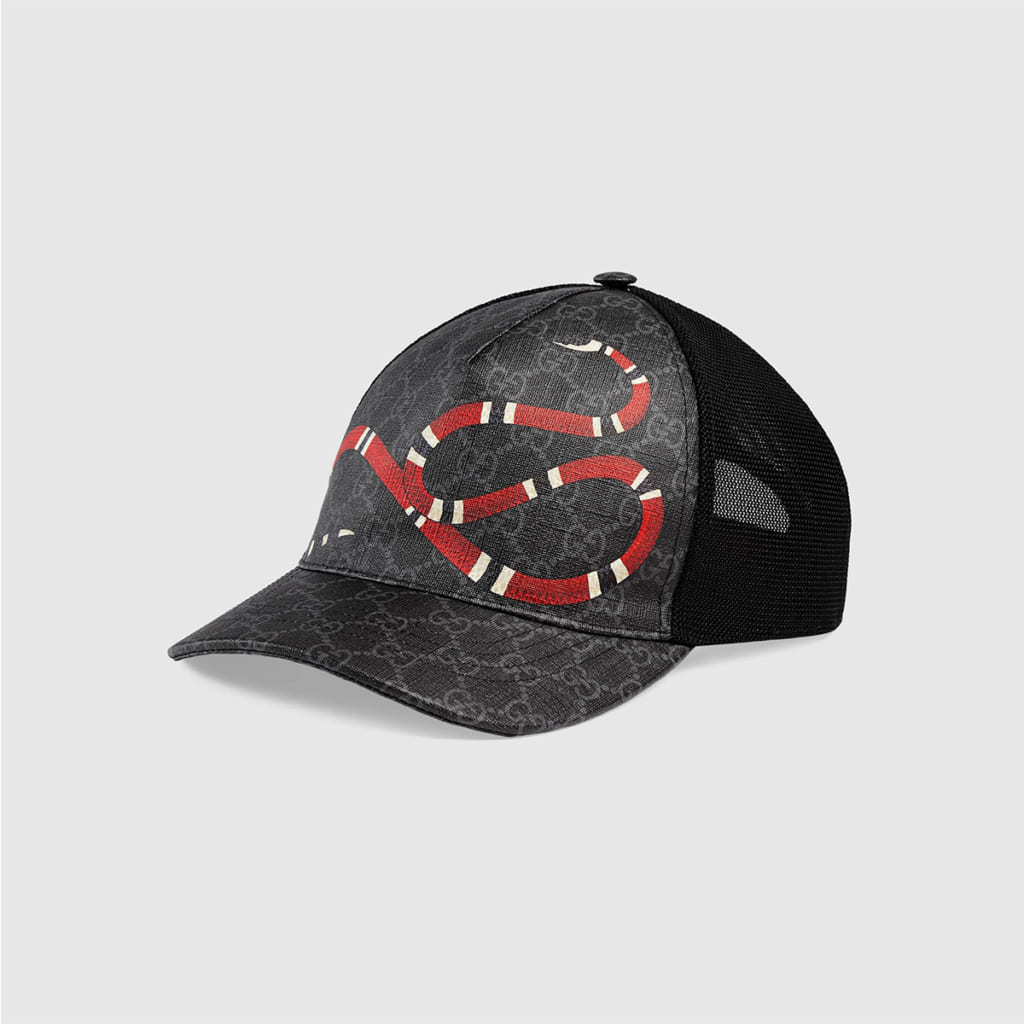 Mũ Gucci Kingsnake Print GG Supreme Baseball Beige