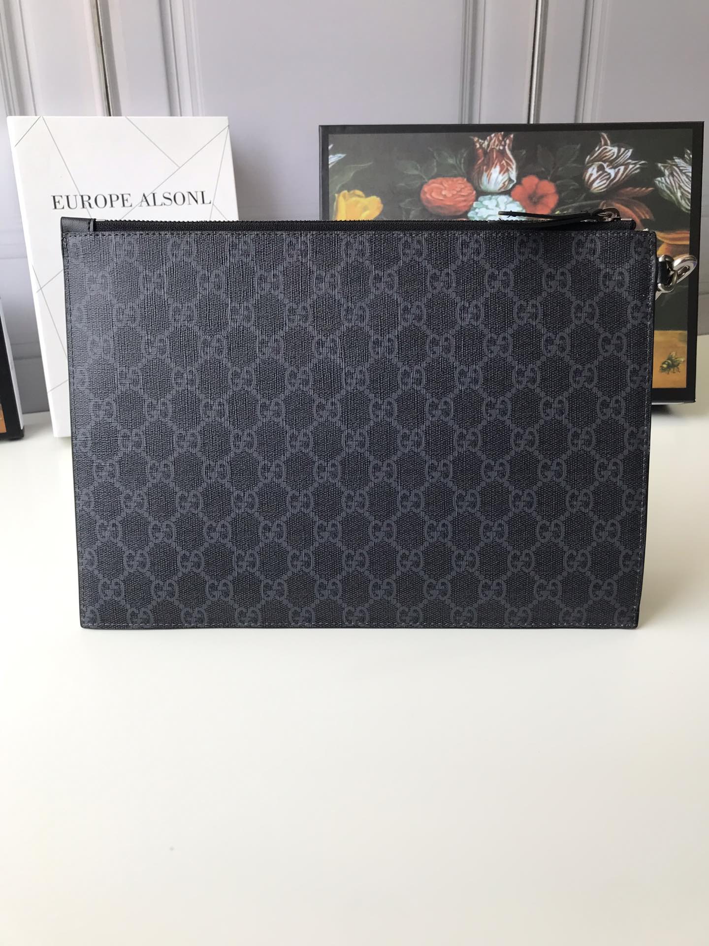 Ví nam Gucci siêu cấp cầm tay xanh đen họa tiết sói